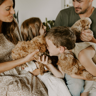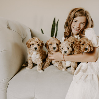 Our family is so blessed and happy that our first litter is healthy and all in their new homes. We are lucky that three are local and two are in Arizona where my parents live so we may visit them from time to time. Now we are spoiling our pregnant F1 Cavapoochon as she gets so close to her due date. We are taking deposits for up to three puppies prior to the litters birth and won't take anymore until they are a week old. Enjoy some photos of all our cuties and some recent family pictures we had taken with our first litter.